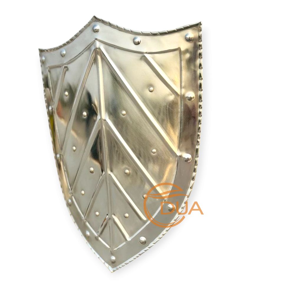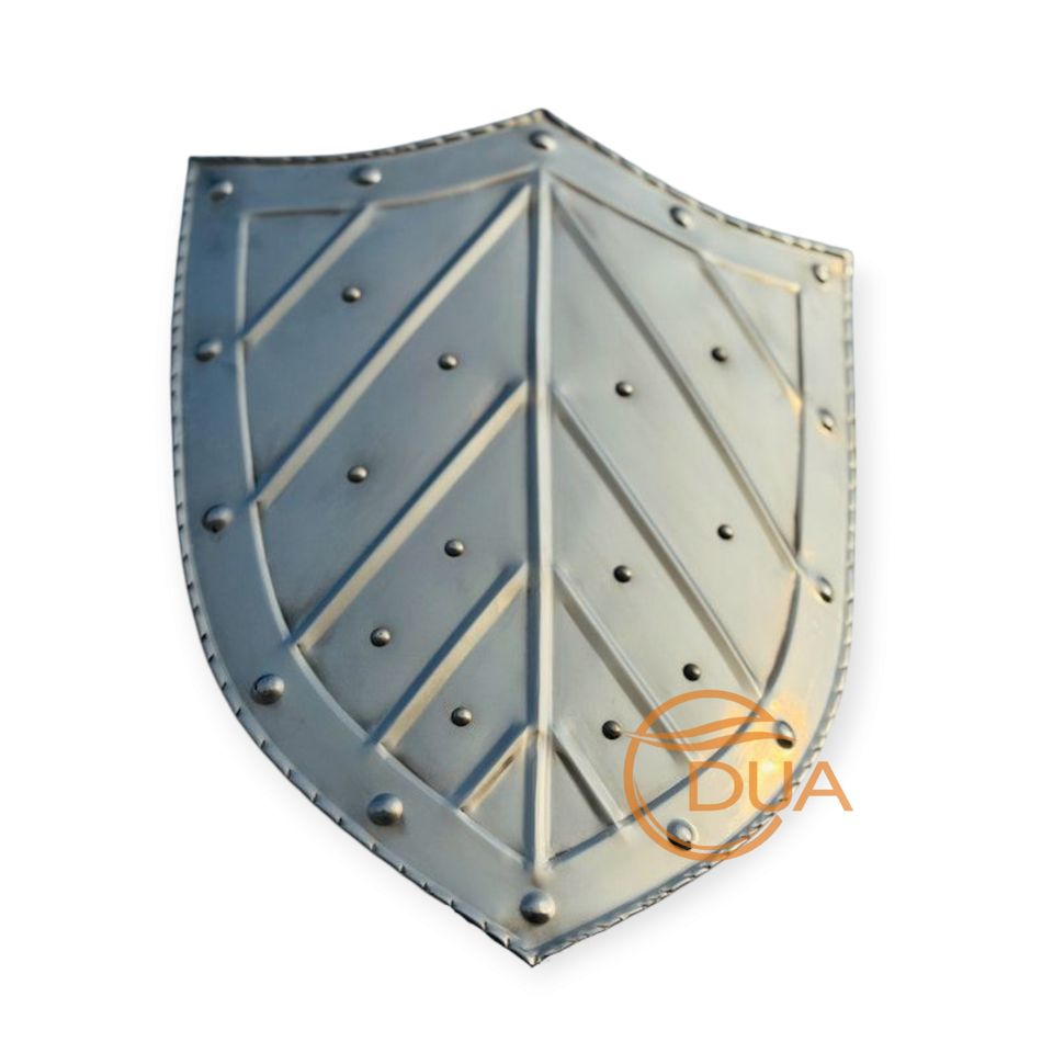 Material de hierro de escudo de batalla puntiagudo de caballero medieval de estilo moderno hecho a mano con central para cresta y remache
