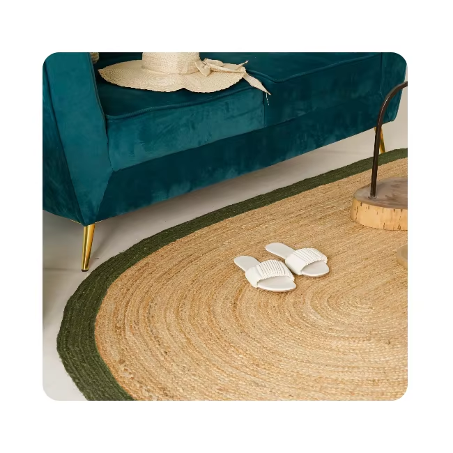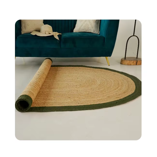 Alfombra ovalada de yute de estilo moderno hecha a mano, alta calidad premium, inspirada en el pueblo indio, Beige, borde verde oscuro, conjuntos de alfombras de mano