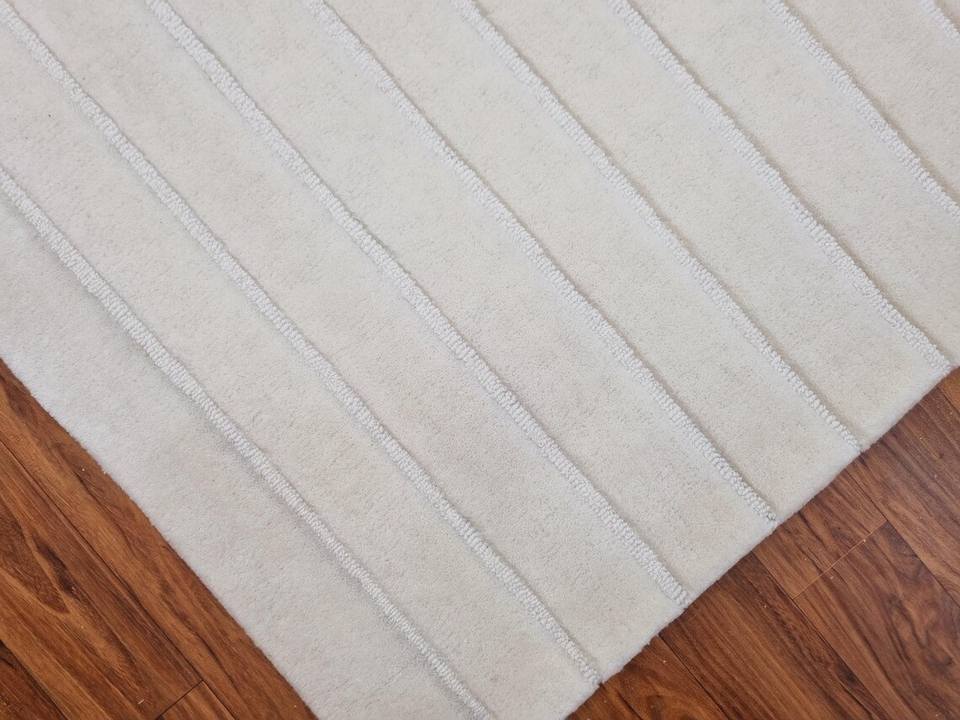 Alfombra de lana Kilim blanca moderna hecha a mano Área grande con pelo alto Características Patrón abstracto