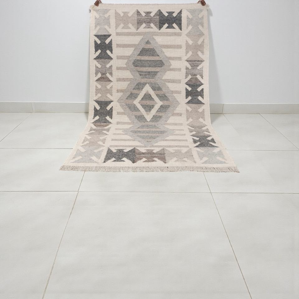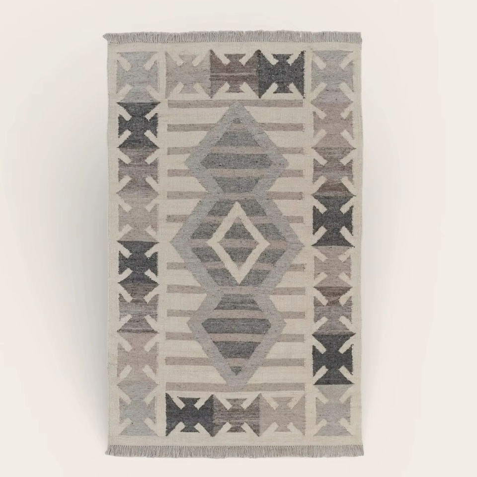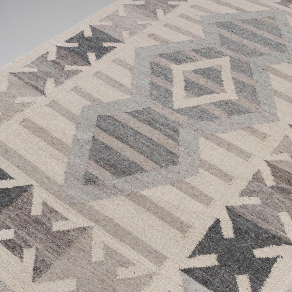 Alfombra Moderna Hecha a Mano de Lana con Patrón Abstracto Gris Beige, Ecológica, Antideslizante, Tejida a Mano, con Flecos para Sala de Estar