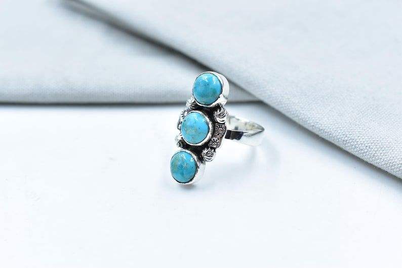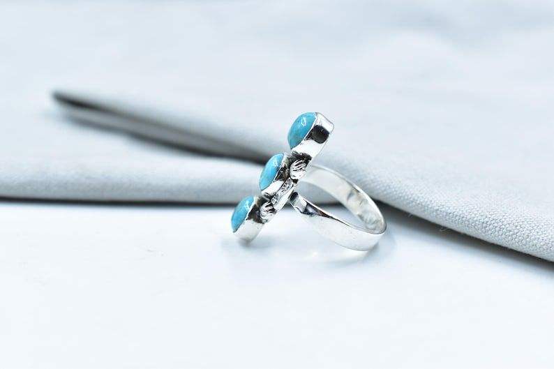 Anillo Ajustable Hecho a Mano con Turquesa Mojave y Plata de Ley para Mujer, Hermoso Regalo de Boda para Mamá, Fiesta