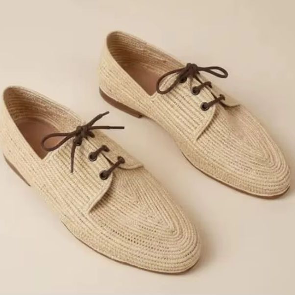 Mocasines de Rafia Marroquíes Hechos a Mano – Zapatos de Boda de Fibra Natural, Calzado Artesanal de Verano