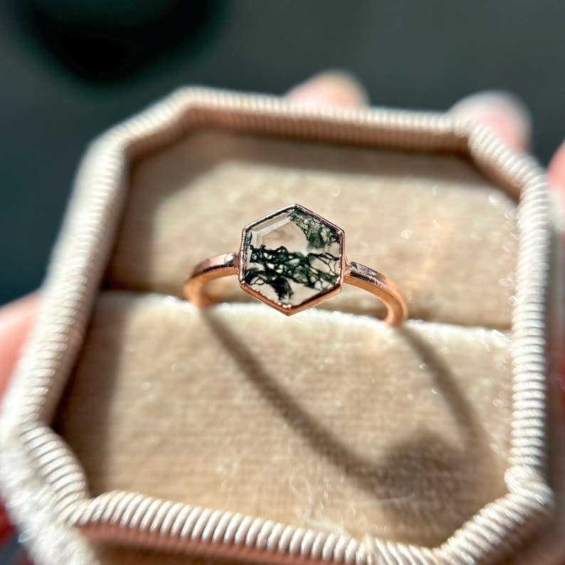 Palabra clave:Anillo de Ágata Musgosa con Piedras Brillantes de Ágata Musgosa.
