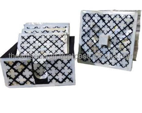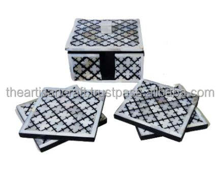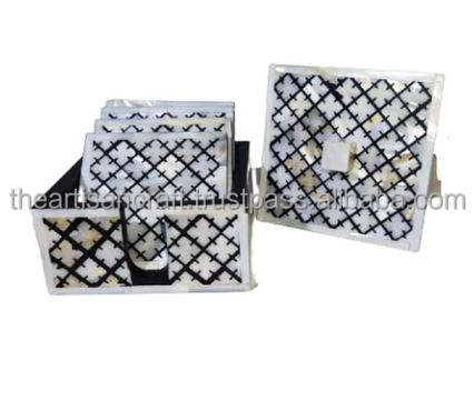 Juego de 4 Posavasos Clásicos Hechos a Mano con Incrustaciones de Madreperla, Ecológicos, Elegantes y Decorativos para Mesa de Centro
