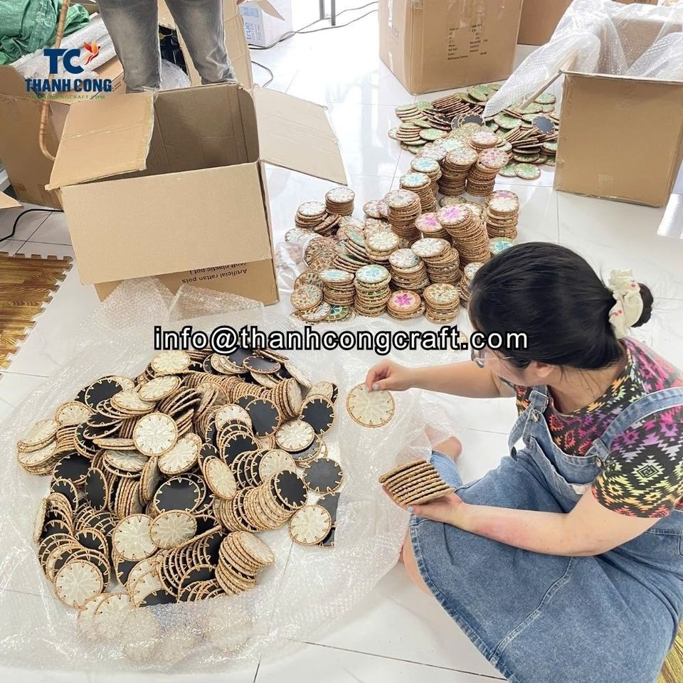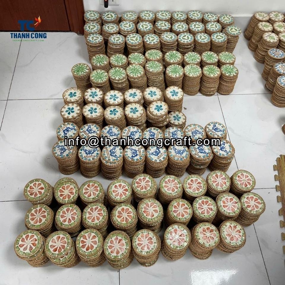 Product name:Mother of Pearl Coaster with Rattan Accents