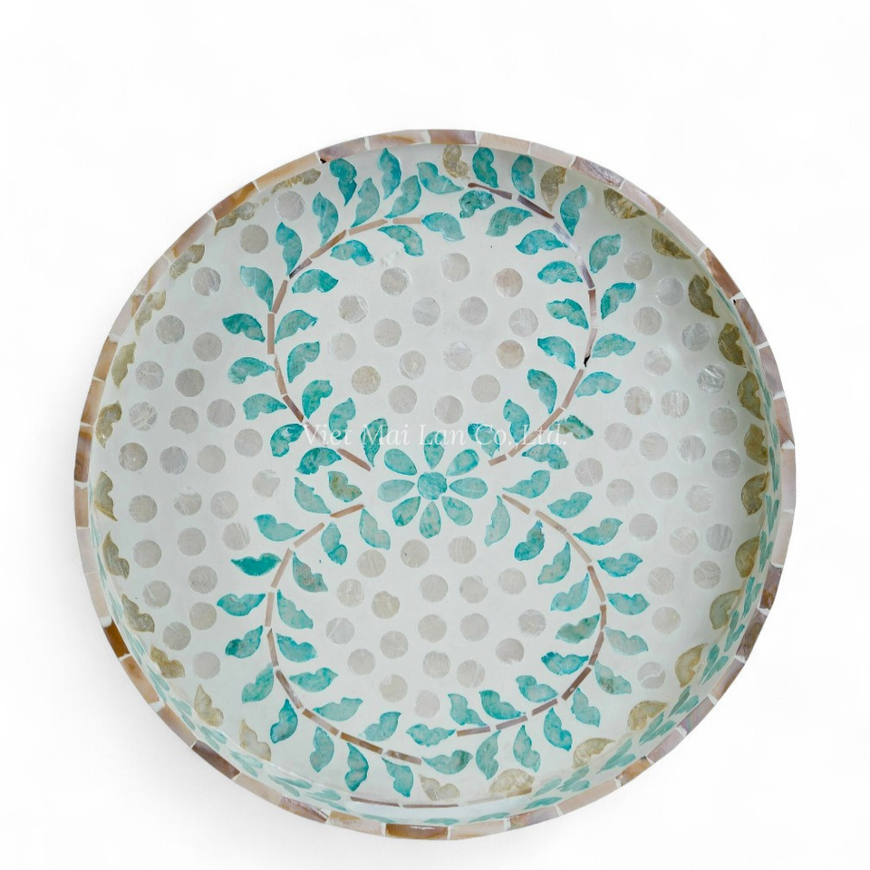 Bandeja de Servicio Hecha a Mano con Madreperla, Decorativa con Incrustaciones de Concha Natural, Ecológica, para Mesa del Hogar
