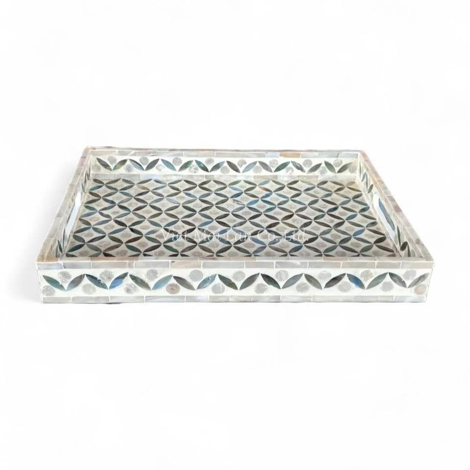 Bandeja de Servir Hecha a Mano con Incrustaciones de Nácar, Bandeja Decorativa con Incrustaciones de Concha, Decoración Natural Ecológica para el Hogar