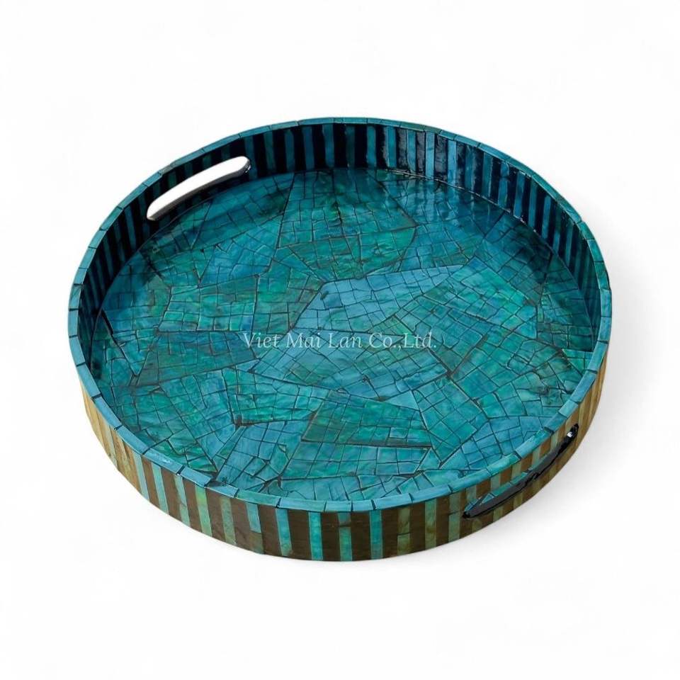 Bandeja de Servir Hecha a Mano con Madreperla, Bandeja Decorativa Ecológica con Incrustaciones de Concha Natural para Uso en la Cocina