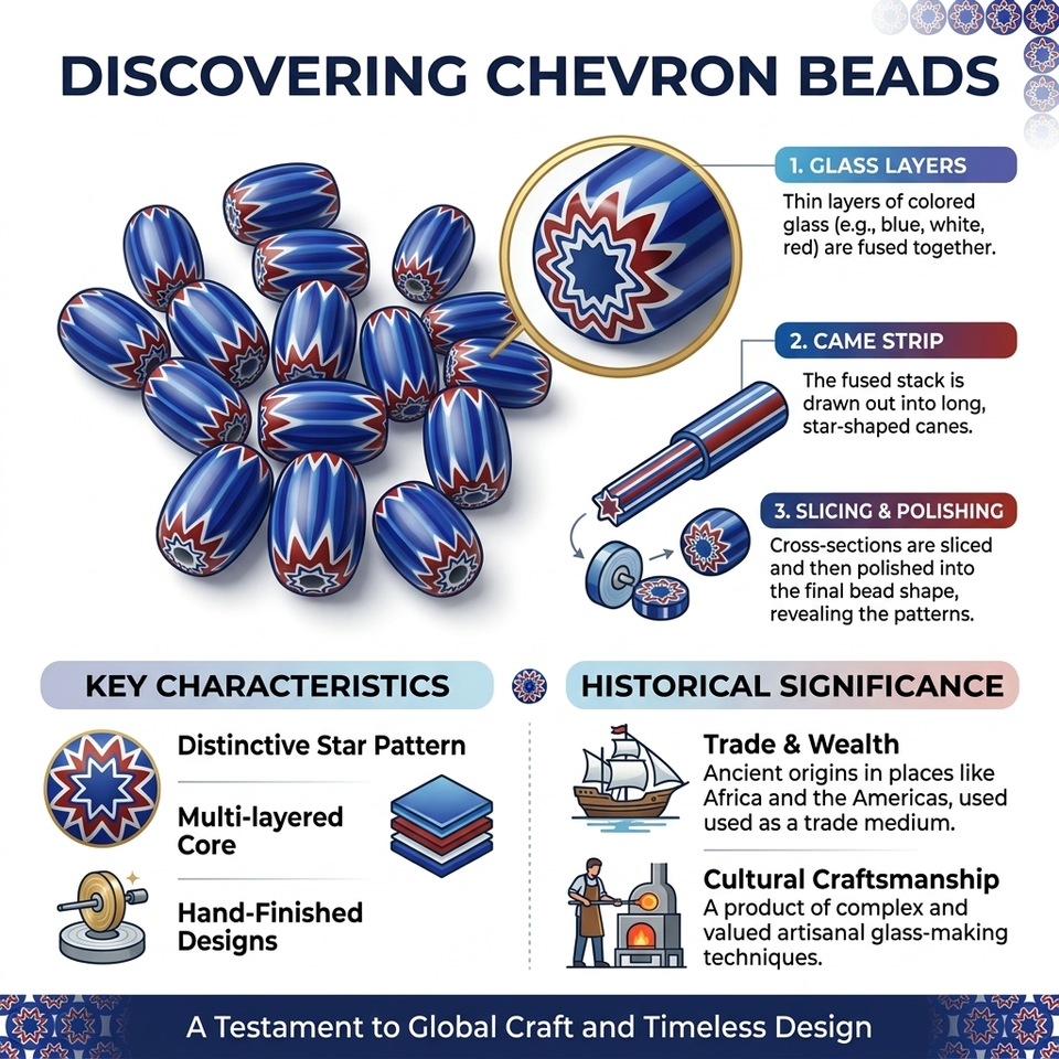 Cuentas de vidrio artesanales de varias capas con diseño de chevron, cuentas africanas Trade Star Rosetta, dijes de vidrio de estilo antiguo para la fabricación de joyas al por mayor