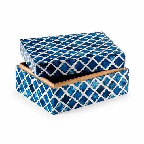 Caja Decorativa de MDF con Incrustaciones de Hueso Multicolor Hecha a Mano, Caja de Almacenamiento para Recuerdos