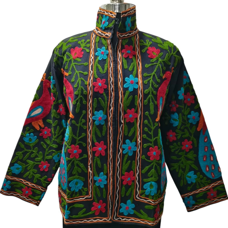 Chaqueta de algodón bordada Suzani multicolor hecha a mano para mujer, diseño Floral transpirable, chaqueta de estilo informal Vintage Boho Chic