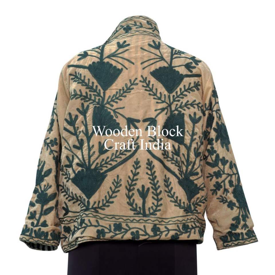 Chaqueta de Terciopelo Bordada Suzani Multicolor Hecha a Mano para Mujer, Diseño Floral Transpirable, Chaqueta Artesanal para Mujer