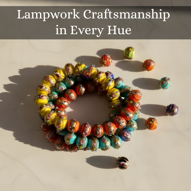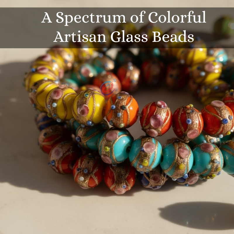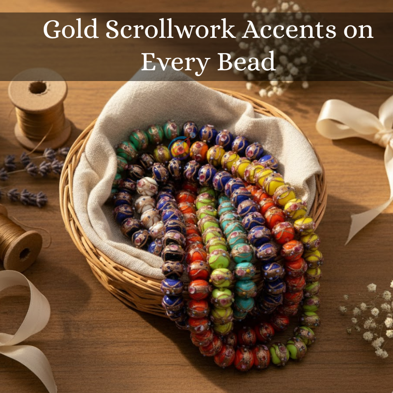 Cuentas de Vidrio Hechas a Mano Multicolores para Pastel de Boda, Cuentas Redondas de 12 mm | Tiras de 8 pulgadas con detalles dorados | Cuentas a Granel para Joyería y Manualidades DIY