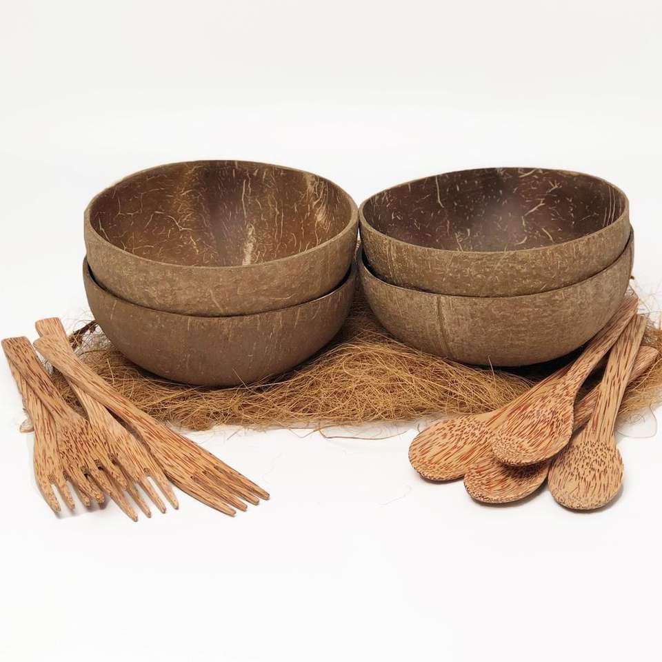 Cuencos de Cáscara de Coco Hechos a Mano, Color Marrón Natural, Forma Redonda, Diseño Simple, Lisos y Pulidos, para Servir Alimentos