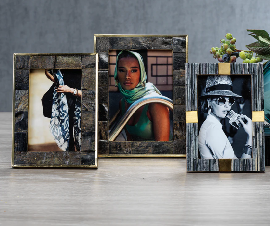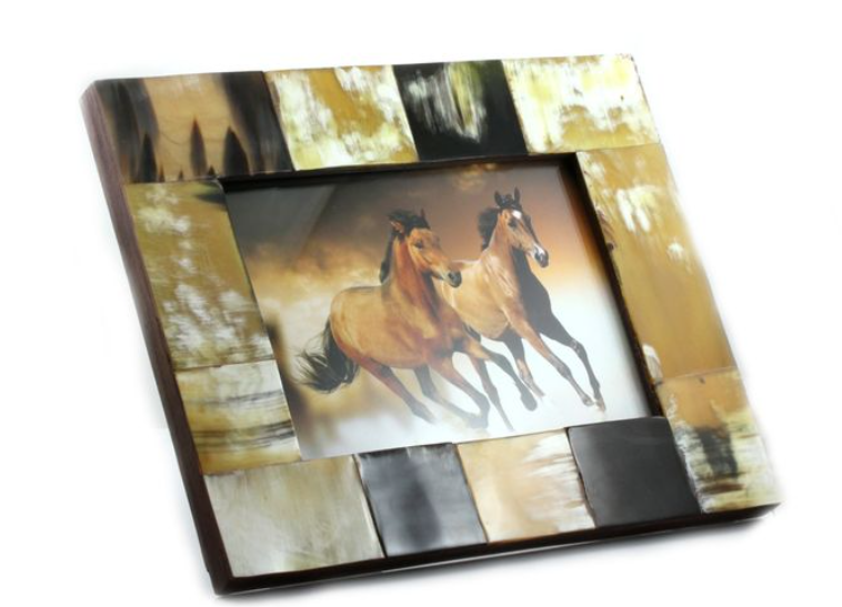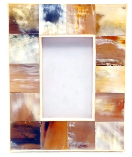 Marco de fotos de cuerno natural hecho a mano Chipset pegado a mano delicado pulido a mano brillante disponible en varios colores