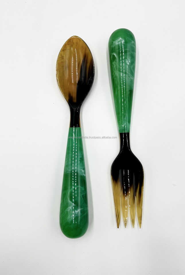 Juego de cucharas de cuerno naturales hechas a mano de la mejor calidad, tamaños pequeños y grandes, acabado alto para fiestas de restaurantes en casa