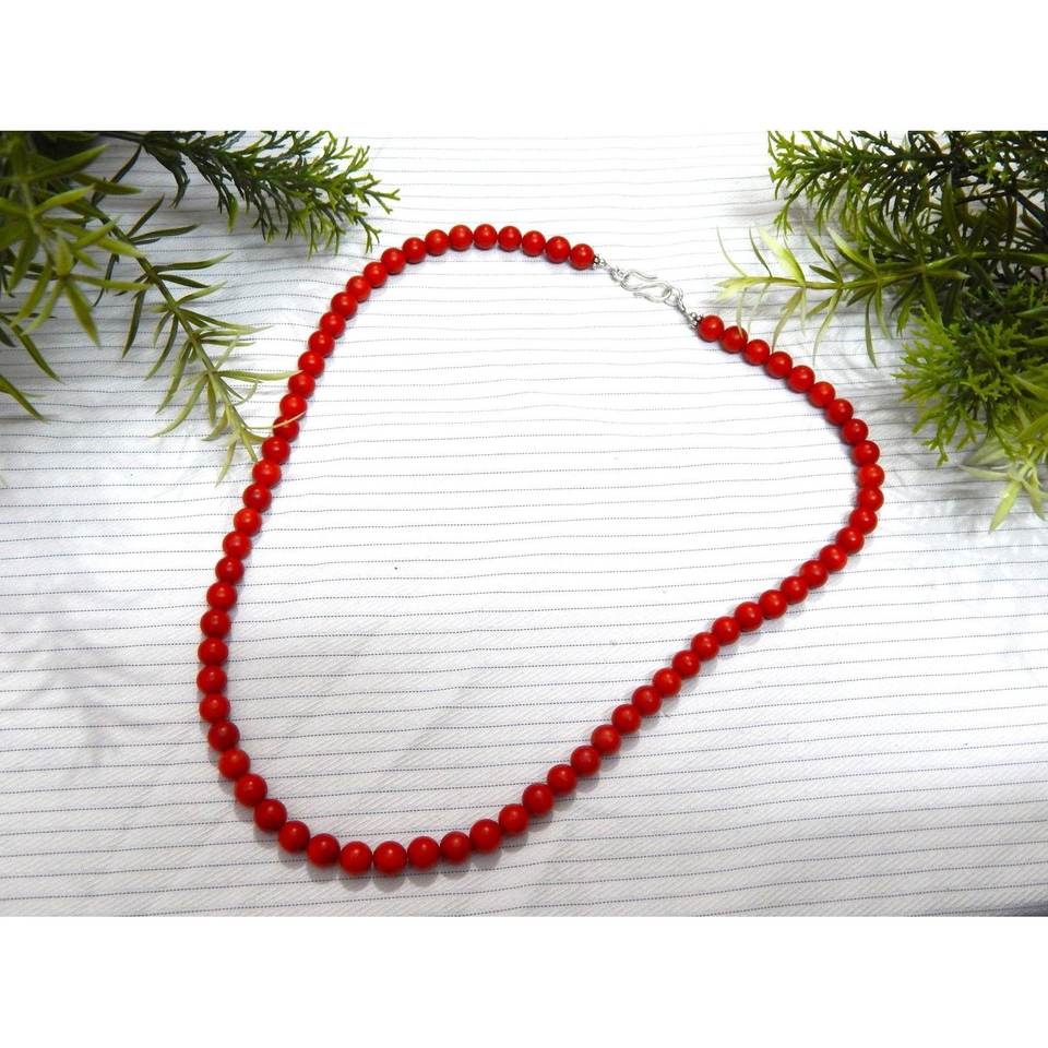 Collar de coral italiano natural hecho a mano, cadena de hilo genuino de plata esterlina con piedras preciosas de cuentas de 6,5mm