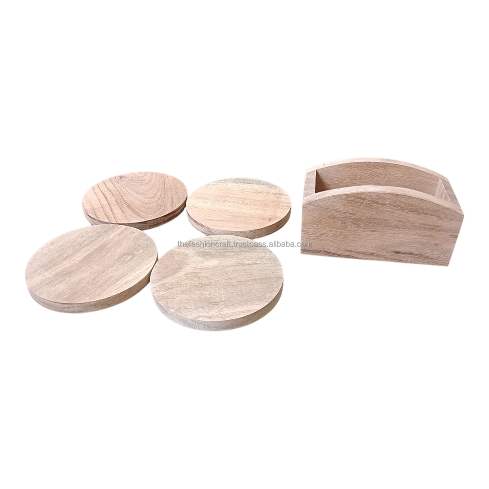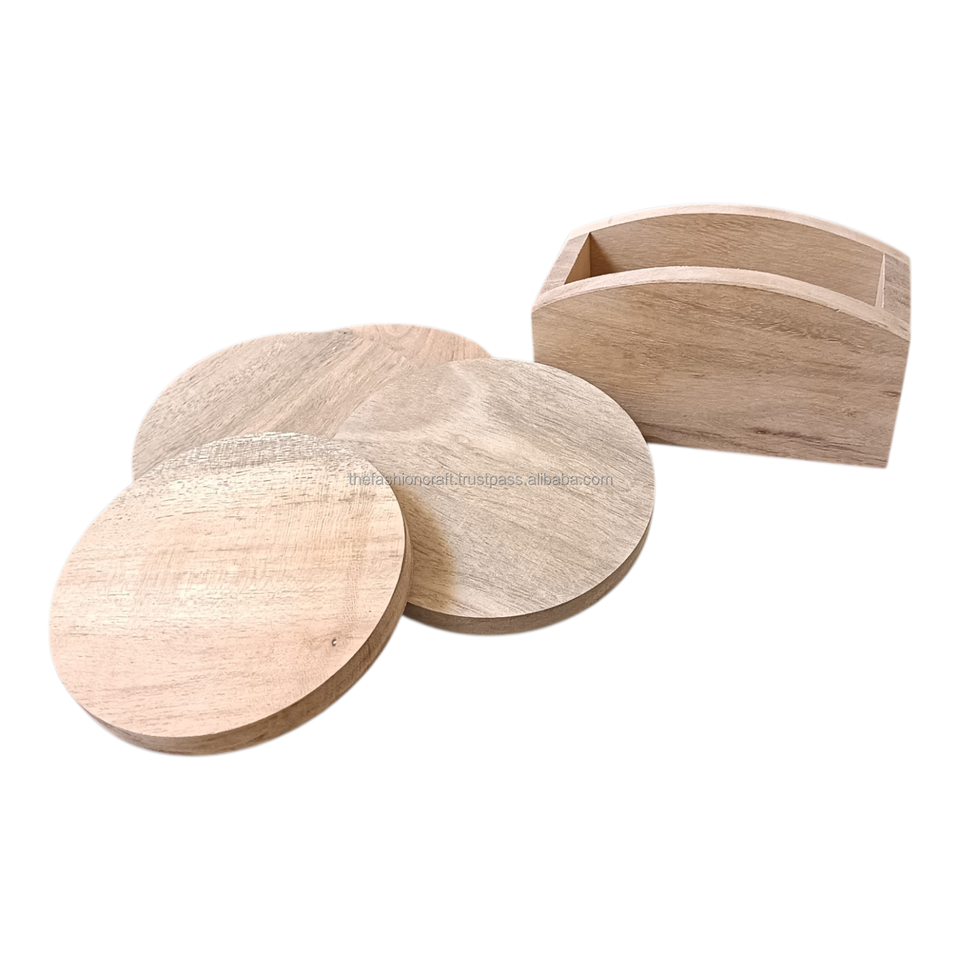 Juego de 4 Posavasos de Madera de Mango Natural Hechos a Mano con Soporte - Posavasos Modernos de Madera para Tazas de Té y Café para Decoración del Hogar y Oficina