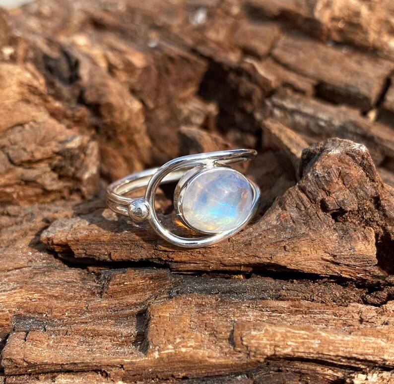 Palabra clave:Anillo de plata 925 con piedra lunar brillante