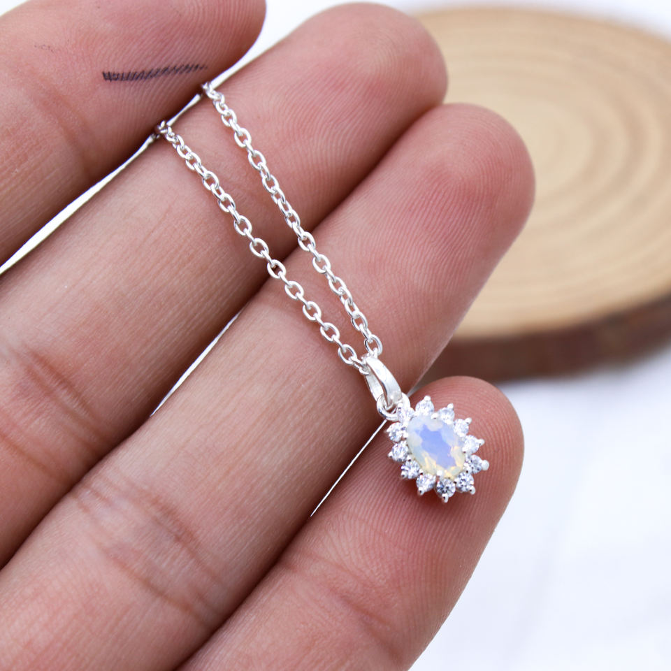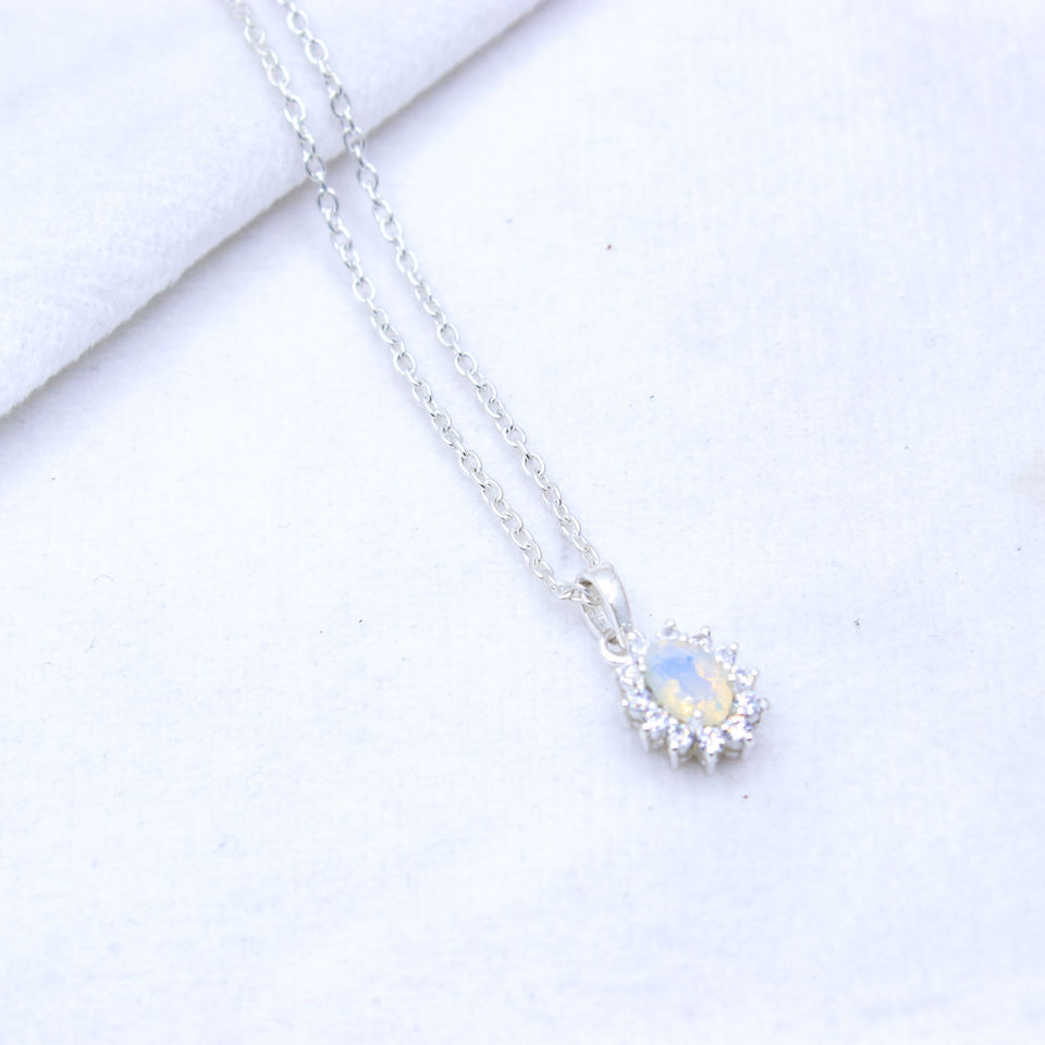 Nombre del elemento:Opal & Zircon Gemstone Collar de plata