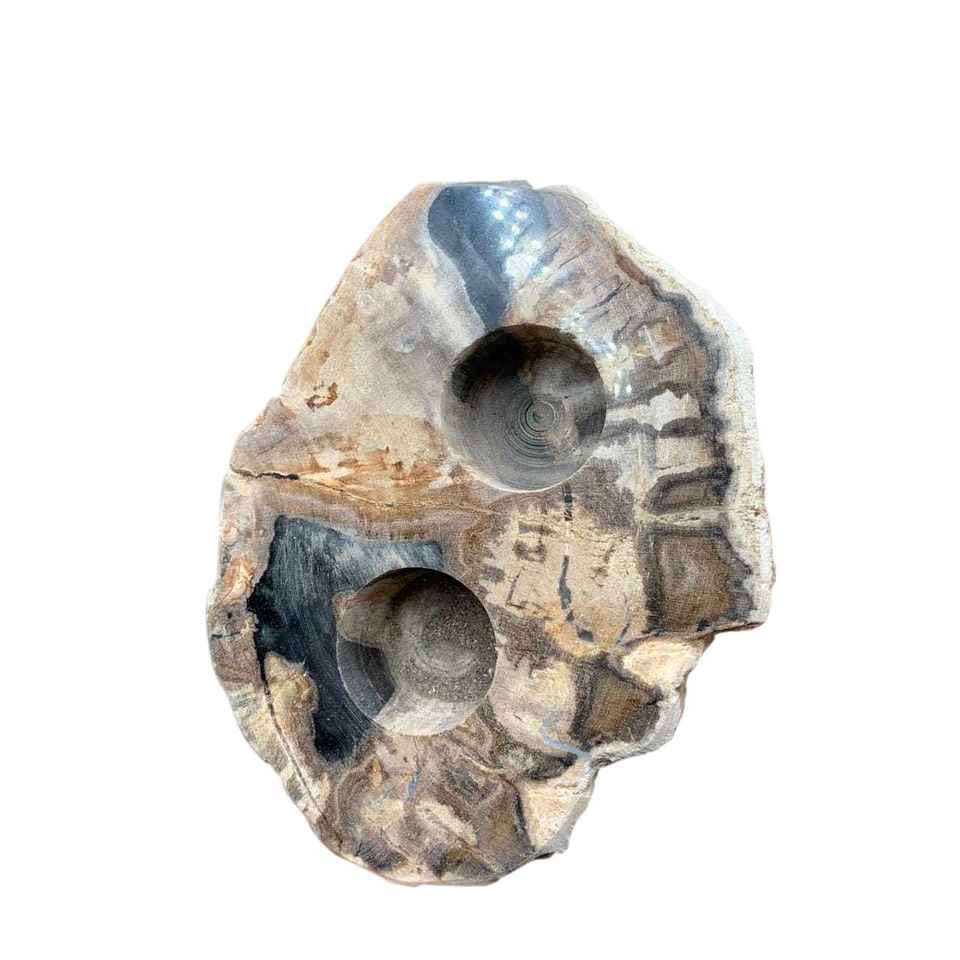 Portavelas de Madera Petrificada Natural Hecho a Mano, Portavelas de Piedra de Doble Orificio para Decoración del Hogar, Faroles de Madera y Frascos para Velas