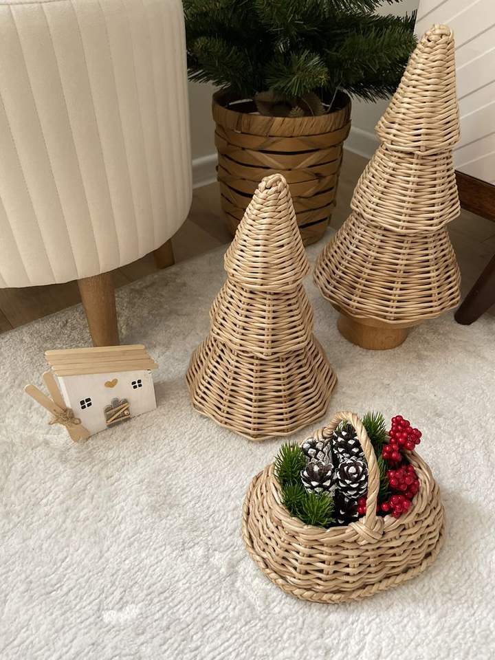 Árbol de Navidad de Ratán Natural Hecho a Mano, Adorno Ecológico para Mesa, Decoración Navideña y del Hogar