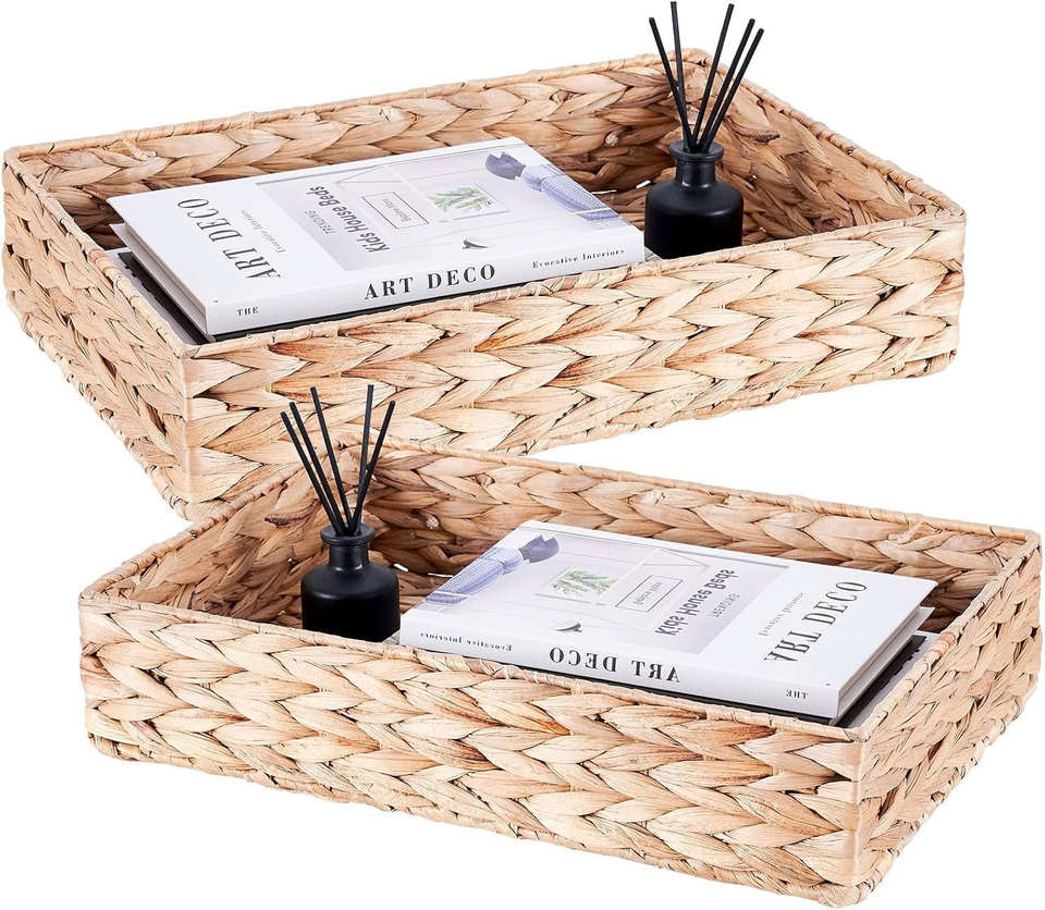 Bandeja de Servir de Ratán Natural Hecha a Mano, Bandeja de Comida Ecológica Tejida a Mano con Asas para el Hogar, Cocina, Hotel, Restaurante
