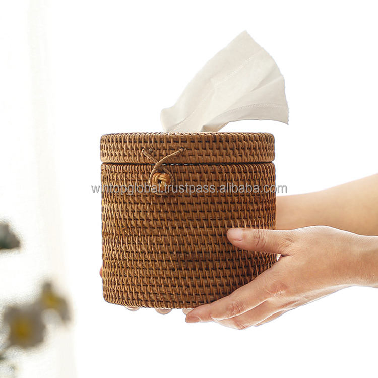 Caja de mimbre de ratán Natural hecha a mano, diseño minimalista moderno de grado comercial, decoración de mesa de marca Wintop para tejido de restaurante