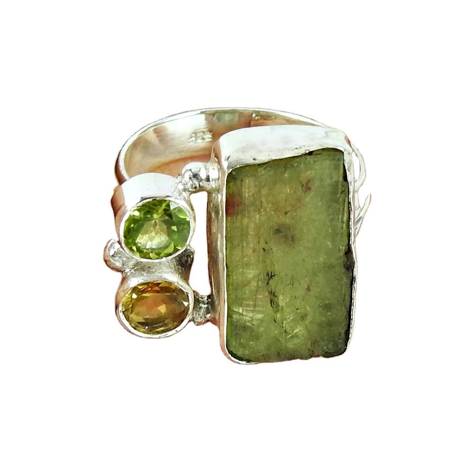 Anillo DE BODA hecho a mano Natural áspero Prehnita peridoto citrino piedra preciosa plata esterlina Boho a granel venta al por mayor regalo de cumpleaños joyería
