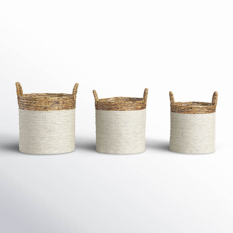 Cesta decorativa de algas marinas naturales hechas a mano, organizador de almacenamiento tejido