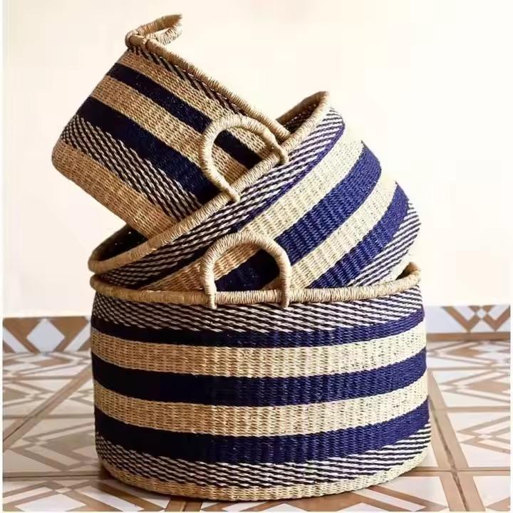 Cestas tejidas de algas marinas naturales hechas a mano, cesto de ropa al por mayor para organización de almacenamiento en el hogar