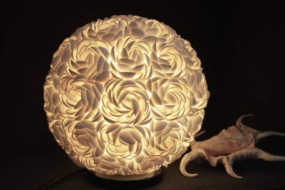 Nombre del producto:Lámpara de mesa con bola de flores de rosa y concha natural