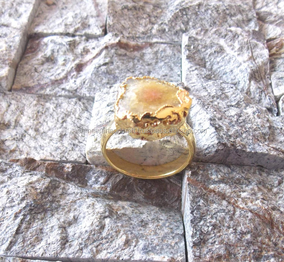 Jewelry Type:Natural Solar Druzy Ring With Gold Plated
