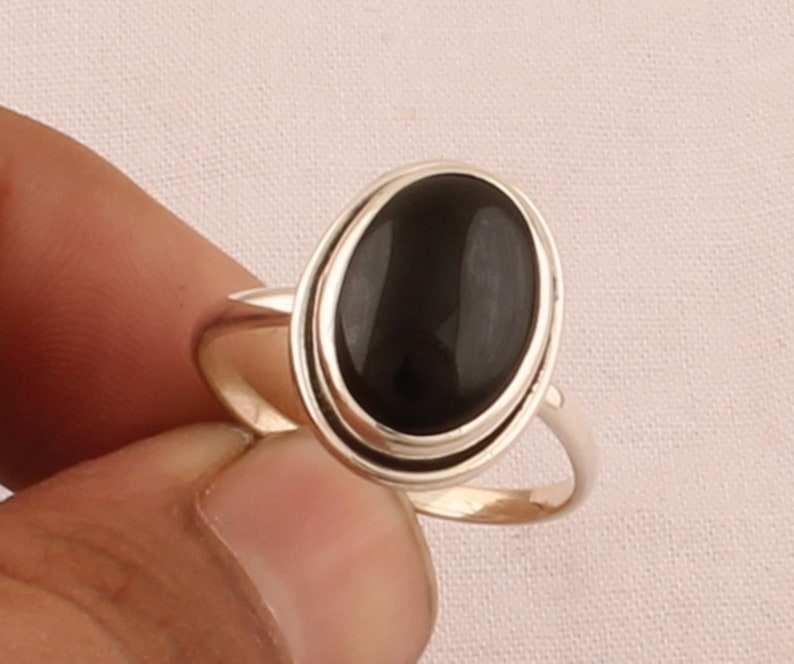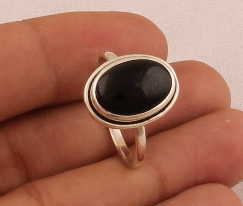 Anillo de ajuste de bisel ovalado de ónix negro de piedra natural hecho a mano en plata de ley 925 para mujer boda y fiesta
