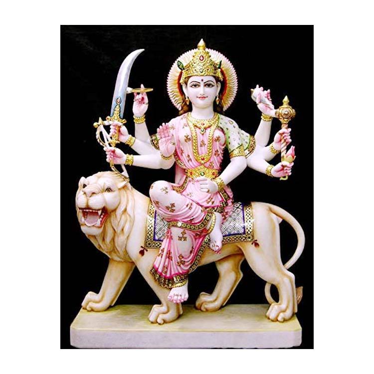 Escultura de mármol blanco Natural hecha a mano, diosa colorida, Shera Wali Mata sentado sobre León, venta al por mayor