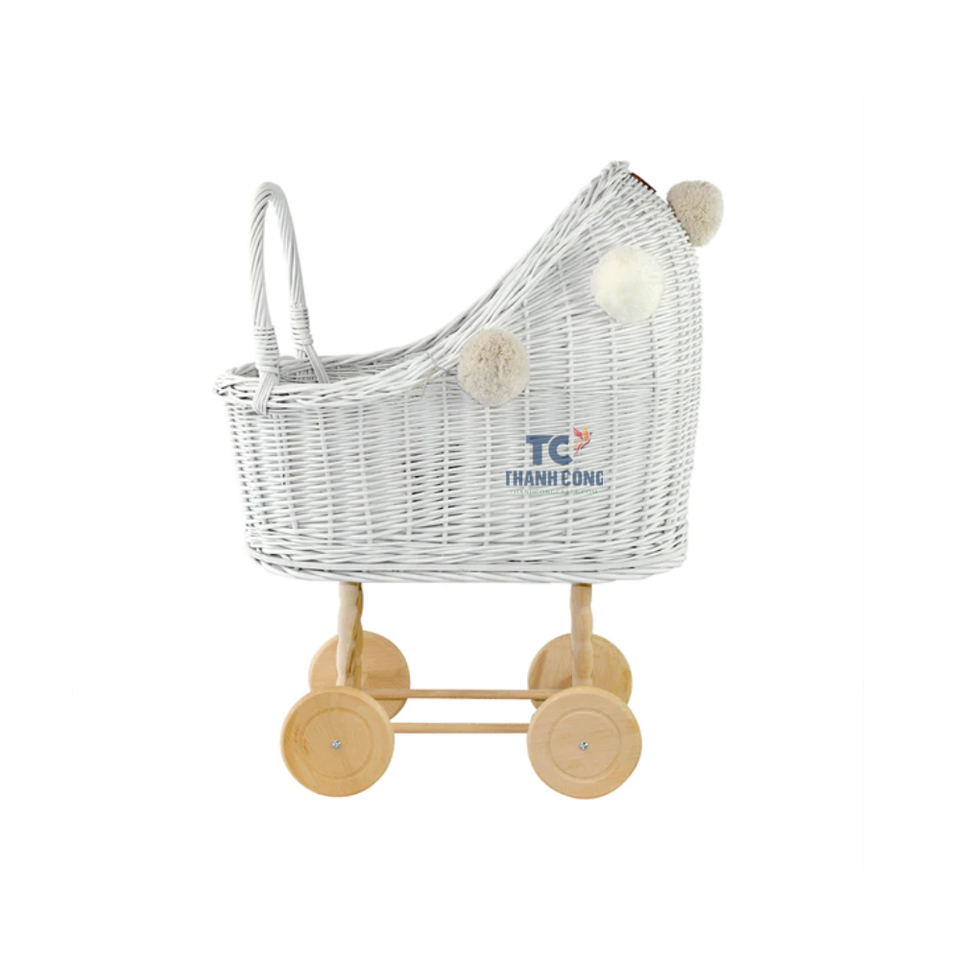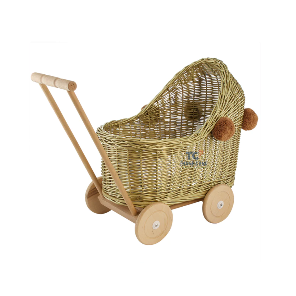 Cochecito de muñeca de mimbre natural hecho a mano juguete móvil de alta calidad para niños muebles de ratán unisex cochecito en forma de bola