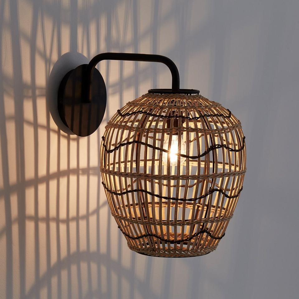 Pantalla de lámpara de ratán hecha a mano pequeña tejida restaurante exquisita luz de pared de ratán de bambú para el hogar Hotel