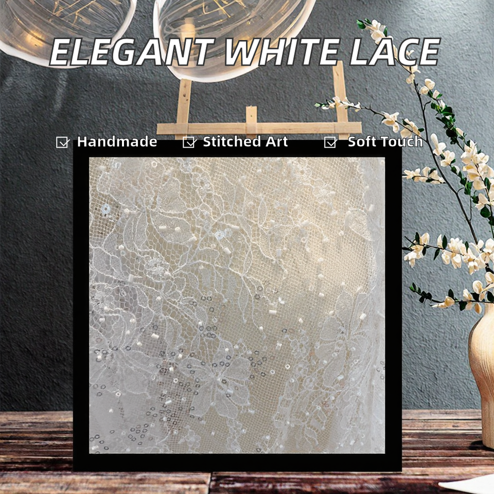 Tela de Encaje Elegante Bordada a Mano, Naturalmente Blanca, con Cuentas Francesas, Sensación Suave, con Lentejuelas, para Vestido de Novia