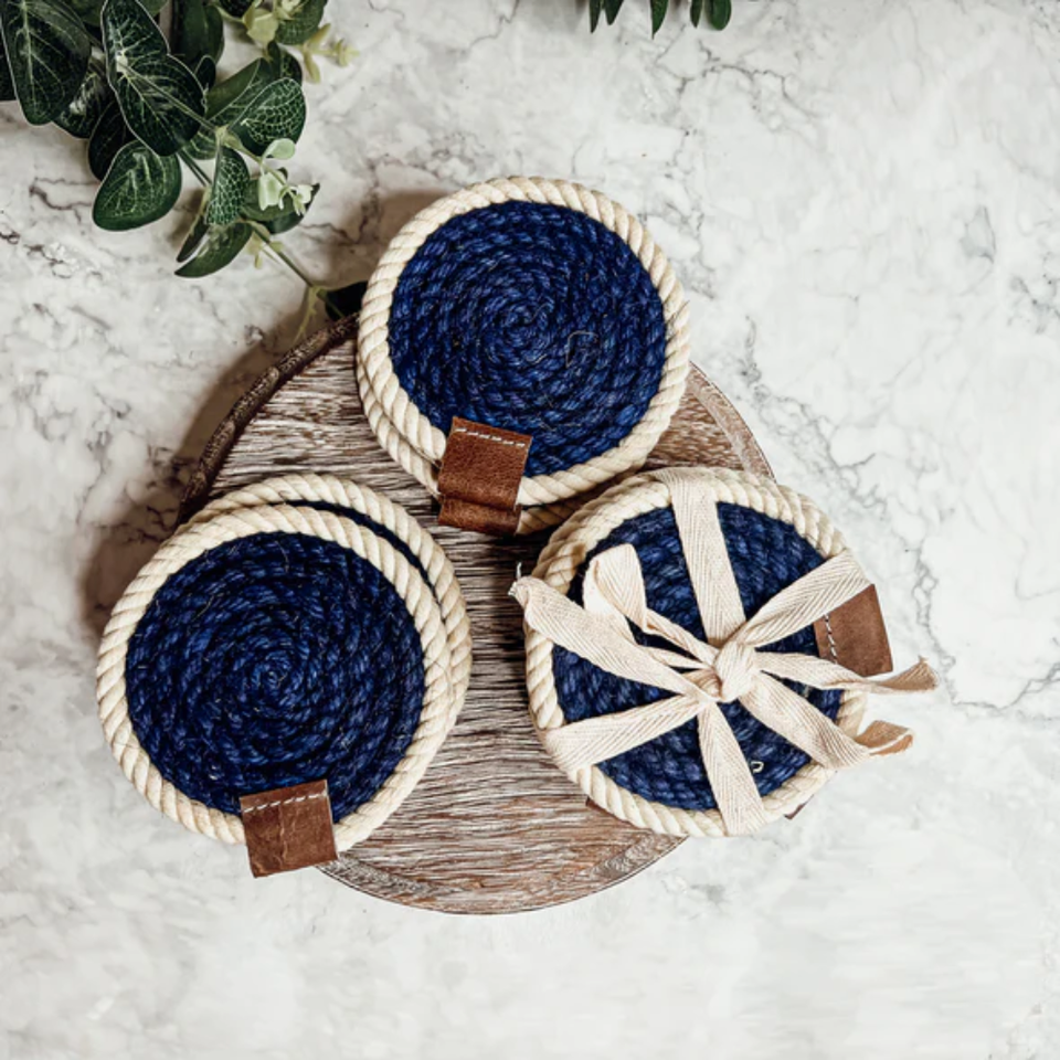 Andmade-posavasos trenzado de cuerda de algodón autical, Juego de 4 vajilla al por mayor de ietnar