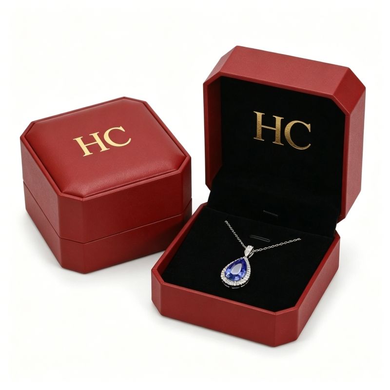 Caja para Collar Hecha a Mano, Forma Personalizada, Cuero Sintético, Caja de Regalo para Joyería, Inserto de Microfibra, Estampado en Relieve, Logotipo Personalizado, Venta Directa de Fábrica