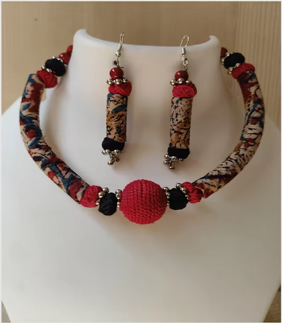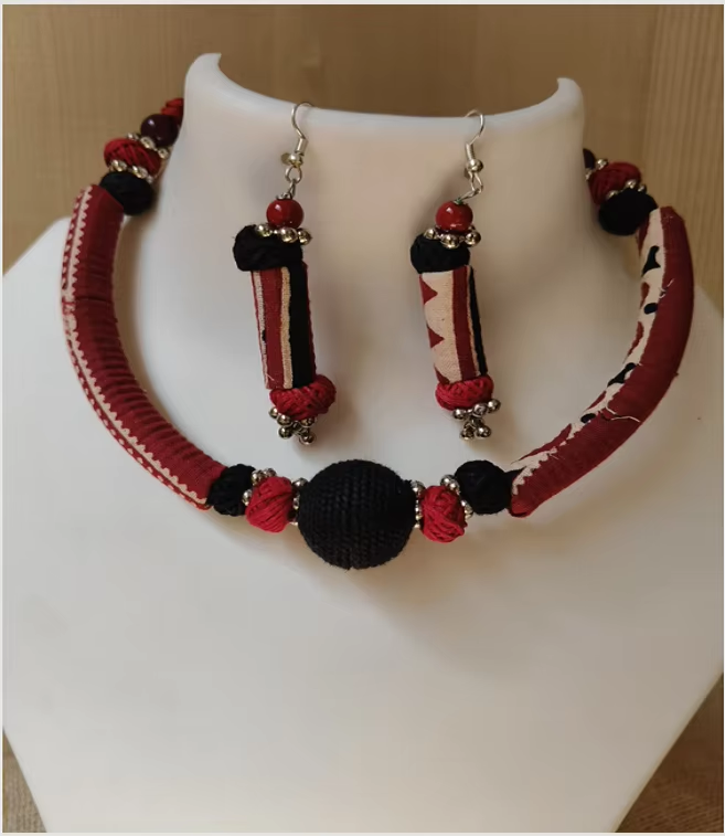 Collar de Novia Hecho a Mano, Estilo Vintage, con Diseño de Corazones, Cadenas de Perlas y Tela de Algodón