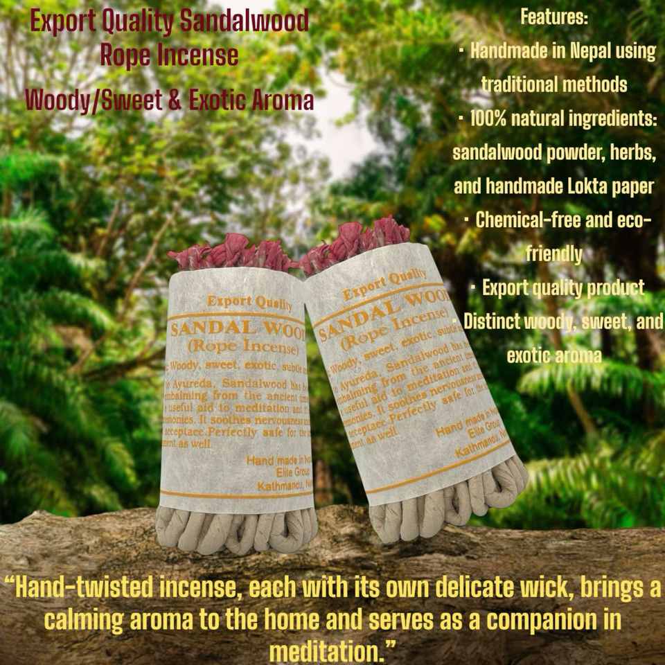 Juego de incienso de cuerda de sándalo tibetano de Nepal hecho a mano, 5 piezas, compañero de meditación, Lokta Natural mecha de papel, difusor ecológico
