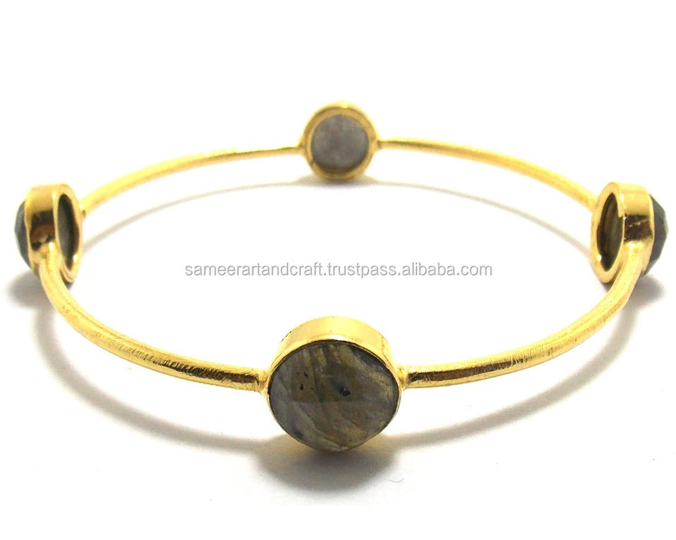 Brazalete Redondo Hecho a Mano con Diseño Bohemio para Mujer, 7 Pulgadas, con Labradorita Natural y Baño de Oro