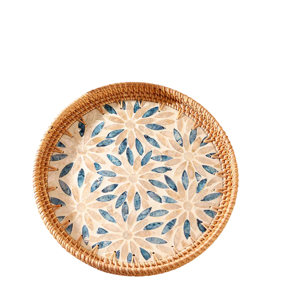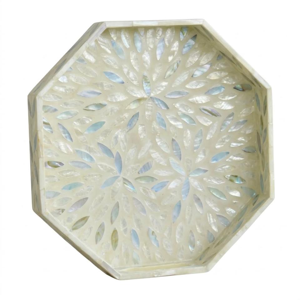 Bandeja octogonal hecha a mano con incrustaciones de nácar, bandeja decorativa de nácar para mesa de centro otomana, adorno decorativo para el hogar.