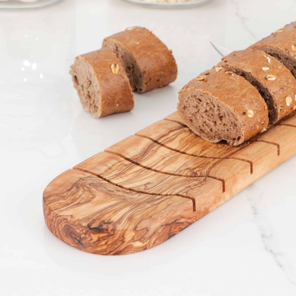 Tabla de pan de madera de olivo hecha a mano para utensilios de cocina al aire libre