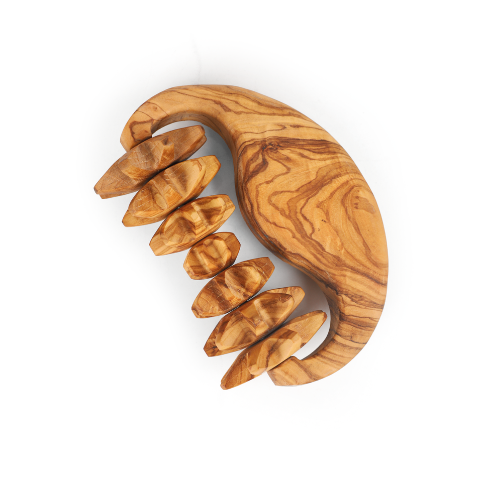 Rodillo masajeador de madera de olivo hecho a mano para drenaje linfático de espalda herramienta de tejido profundo estilo de imitación antiguo mediterráneo