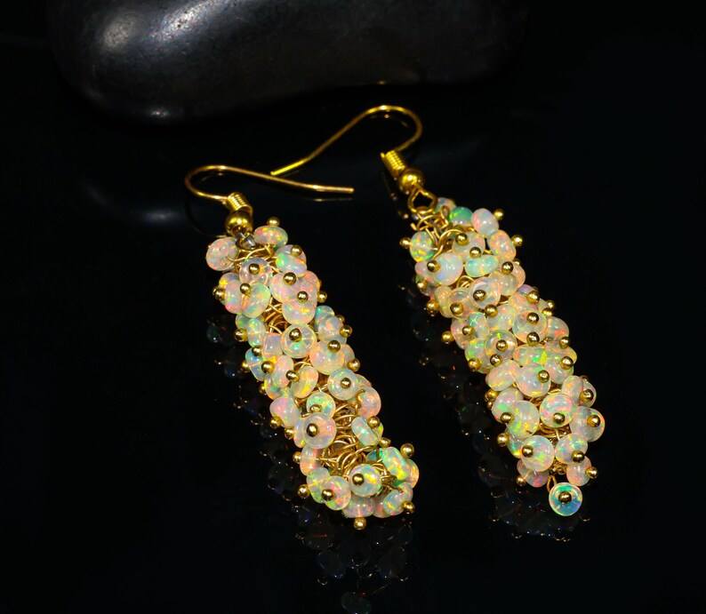 Palabra clave:Pendientes de racimo de ópalo brillan con piedras de ópalo