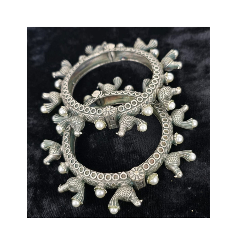 Brazaletes y pulseras de plata alemana oxidada.