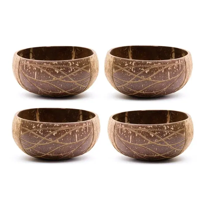 Cuenco de cáscara de coco orgánico hecho a mano, utensilios de cocina sostenibles y desechables para comidas y batidos veganos