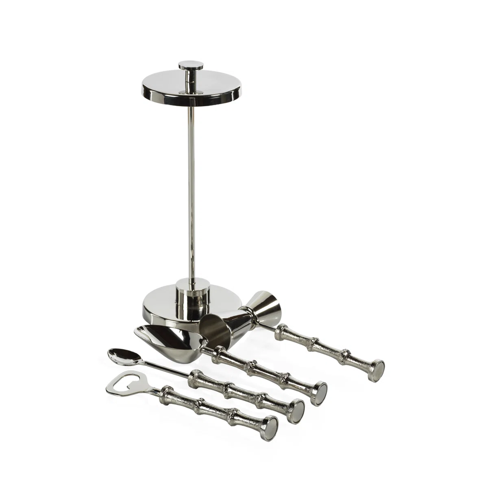 Juego de herramientas de barra de acero inoxidable adornado hecho a mano con base de mármol y mangos de lujo